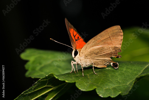 Colorful Butterfly Perched on Leaf with Vivid Orange Wings