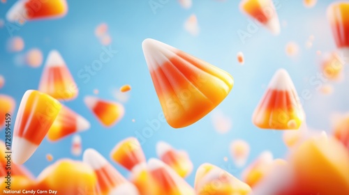 Colorful candy corn in blue sky background for national candy corn day celebration