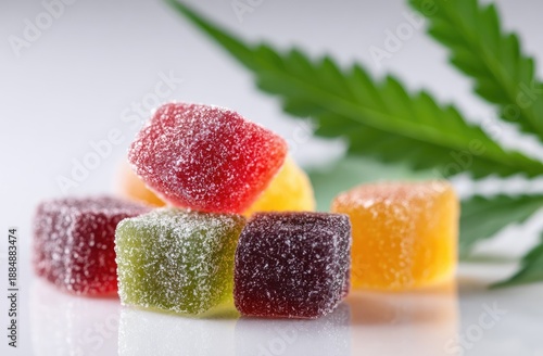 Colorful Cannabis Infused Edible Gummies with Leaf.