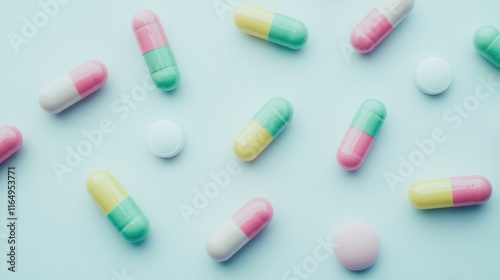 Colorful capsules and tablets on light background showcasing pharmaceutical medication for health and wellness treatment options.