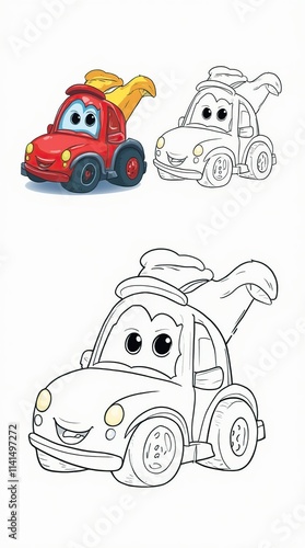 Colorful Cartoon Car with Outline for Kids' Coloring Fun