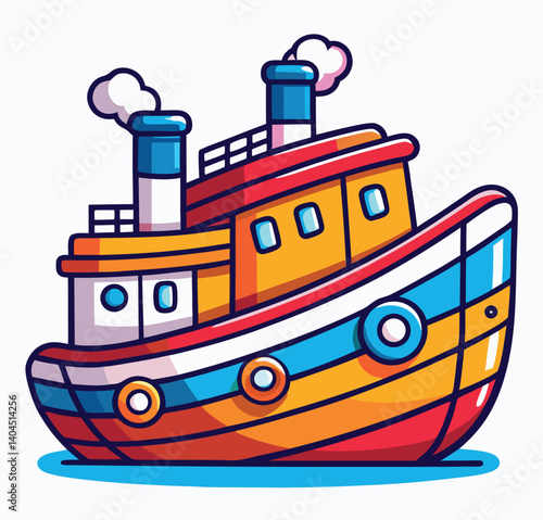 Colorful Cartoon Steamboat Illustration With Smoke Stacks And Bold Outlines On White