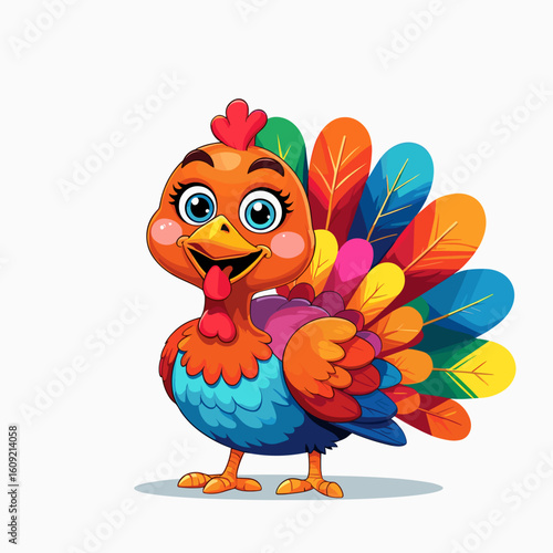 Colorful cartoon turkey with a happy expression and vibrant feathers