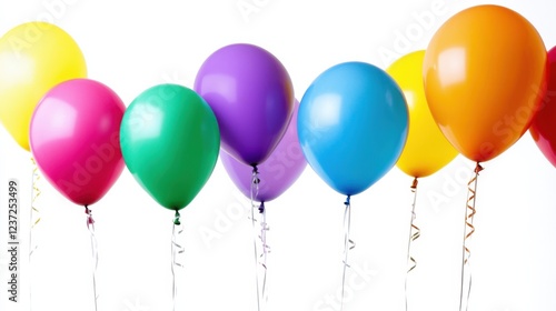 Colorful celebration balloons against a white background, Festive scene, Cheerful style
