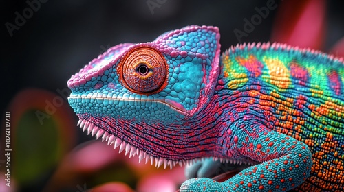 Colorful Chameleon in Vivid Fuchsia and Turquoise Hues