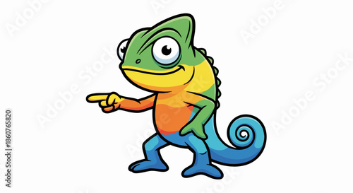 Colorful chameleon pointing with its finger, a vibrant illustration.