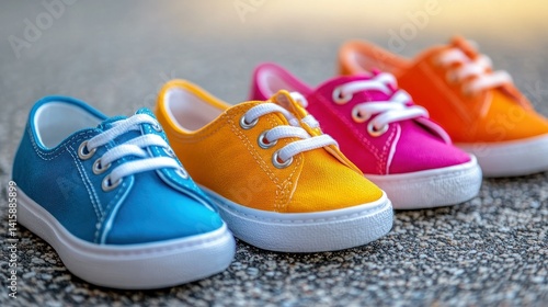 Colorful children's canvas shoes in vibrant hues