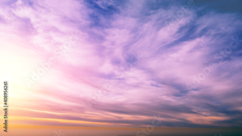 Colorful cloudy sky at sunset. Gradient color. Sky texture, abstract nature background