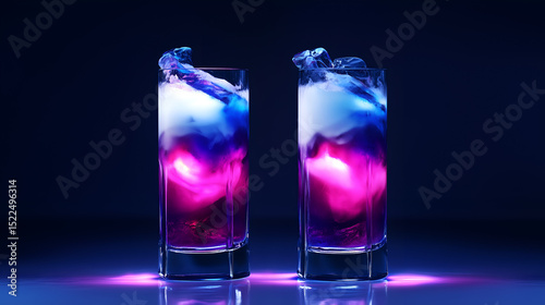 Colorful cocktails glowing under vibrant neon lights. Nightlife vibes, party mood, bold colors, urban summer energy, modern aesthetic and visual impact.