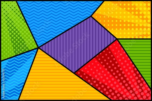 Colorful colors vector background template with polygonal Comic Style. Landscape layout. dot, line stripped pattern.