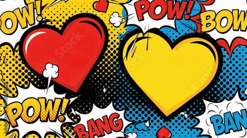 Colorful Comic Style Hearts with Action Words for Fun and Creative Design Projects