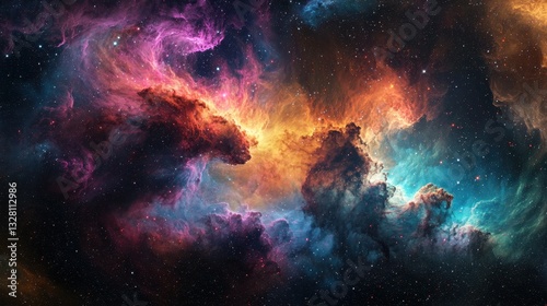 Colorful Cosmic Nebula with Bright Stars in Deep Space Background