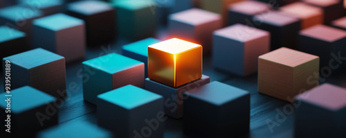 Colorful cubes arranged in patterns represent creativity.