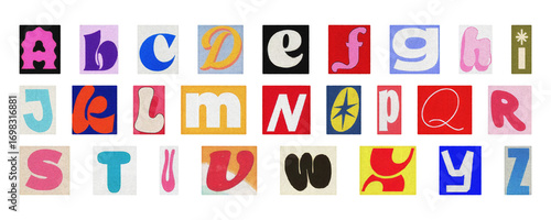 Colorful cut-out alphabet letters set, PNG isolated collage typography