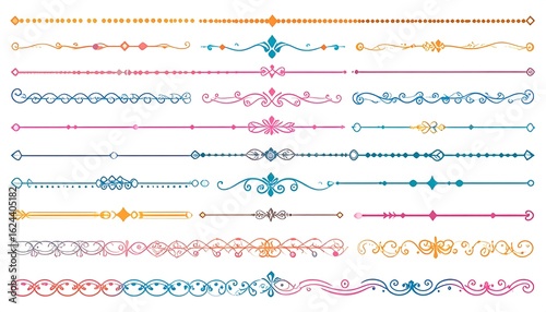 Colorful decorative lines; various ornate, swirling, and geometric patterns