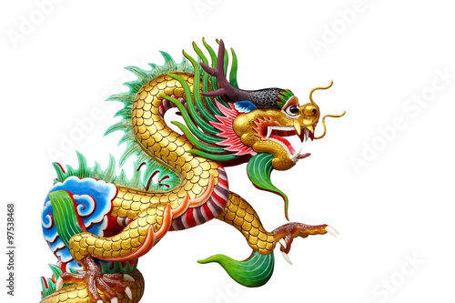 Colorful dragon statue on white in Chinese Shrine.