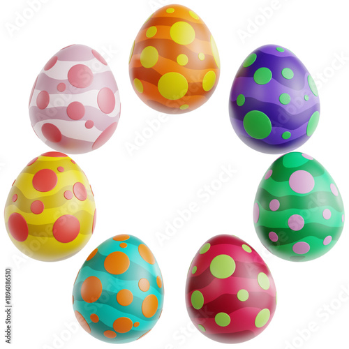 Colorful Easter Eggs Arranged in a Circle with Polka Dots