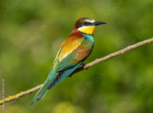 Colorful European bee-eater on a branch.