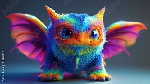 Colorful fantasy creature with wings and big eyes, resembling a cute baby dragon, perfect for imaginative and whimsical designs.