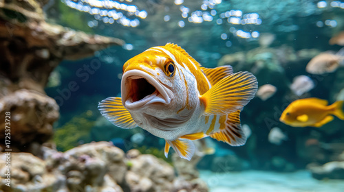 Colorful fish swimming in aquarium, showcasing vibrant scales and lively movement