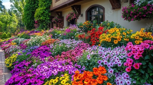 Colorful Flower Garden Adjacent to a Residence