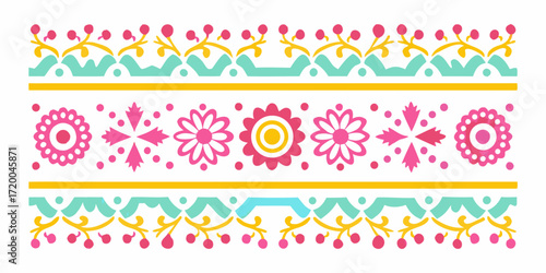 Colorful folk art border with floral and geometric elements