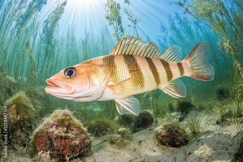 Colorful Freshwater Fish Swimming in Crystal Clear Lake Water