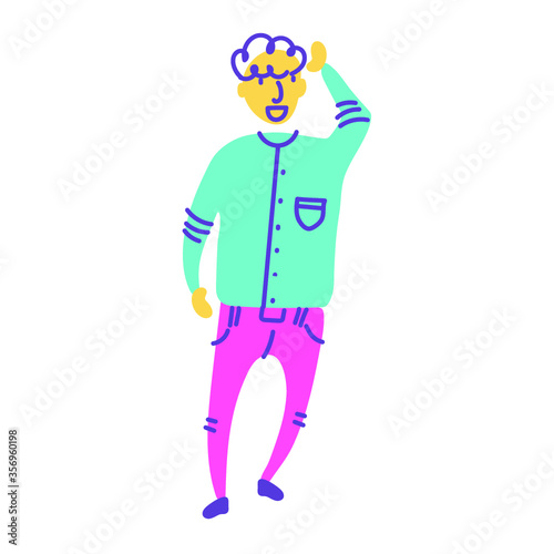 Colorful fun dynamic character greeting, vector illustration isolated on white background