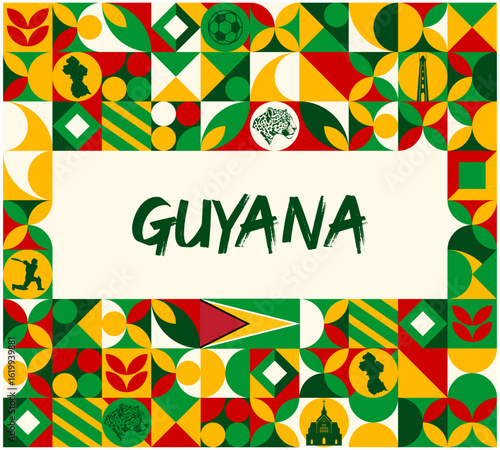 Colorful Geometric Guyana Banner with Cultural Symbols and Flag Elements