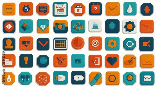 Colorful geometric icons collection for digital design, business, technology, and communication purposes