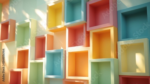Colorful Geometric Wall Shelves in Bright Pastel Shades for Modern Interior Decor