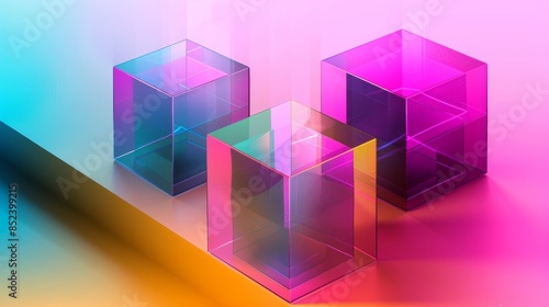 Colorful Glass Cubes on Gradient Background.