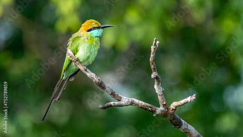 Colorful Green Orange and Blue Bee-Eater perches on a branch whilst searching its next meal, Sri Lanka