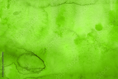 Colorful green watercolor texture with abstract washes and brush strokes on the white paper background. Chaotic abstract organic design.