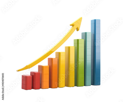 Colorful growth chart with upward arrow representing success on a transparent background, cut out