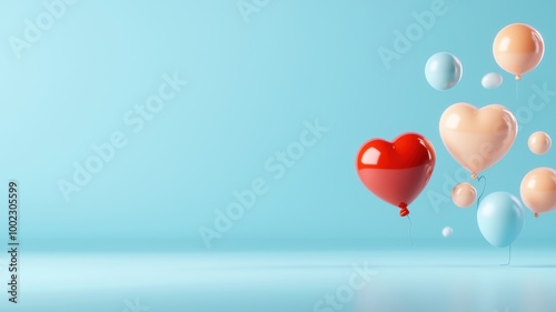 Colorful Heart Balloons on Blue Background