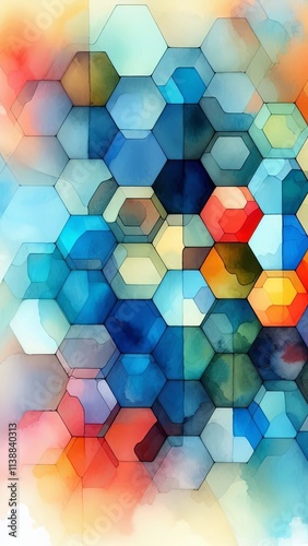 Colorful Hexagonal Geometric Pattern with Watercolor Texture