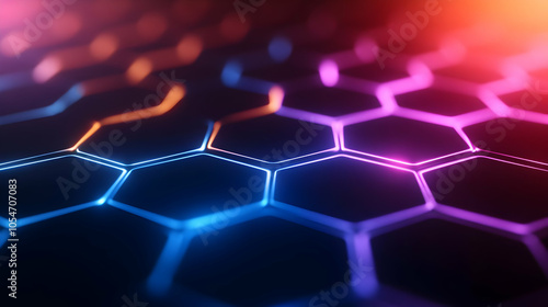 Colorful hexagonal pattern with glowing edges, creating a futuristic digital background.