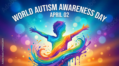 Colorful Human Silhouette with Abstract Paint Swirls for World Autism Awareness Day