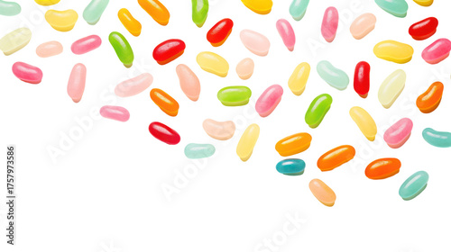 Colorful jelly beans scattered on a black background isolated on transparent background