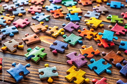Colorful Jigsaw Puzzle Pieces Scattered on Table - Rule of Thirds Composition