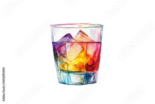 Colorful layered cocktail with ice in a glass isolated on transparent background. Colorful drink with ice in a glass isolated on white background.