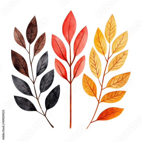 Colorful leaf illustrations, white isolate background , transparent, Clipart