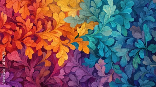 Colorful Leaf Patterns with Vibrant Swirls and Textured Background