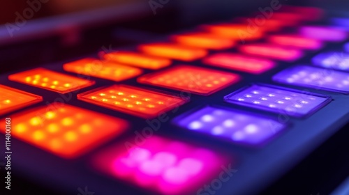 Colorful LED pads create a vibrant visual display during a live music performance at a creative studio