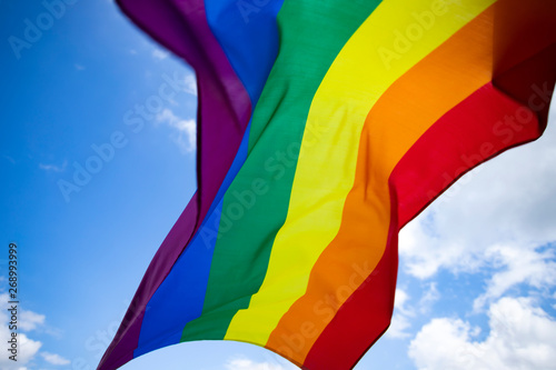 Colorful LGBT flag blows in the breez.