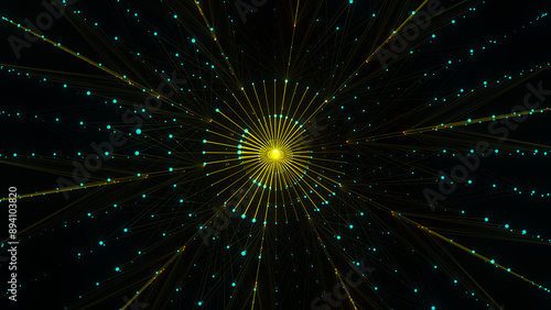 Colorful line particle City data digital futuristic network connection. 3D Rendering Technology concept.
