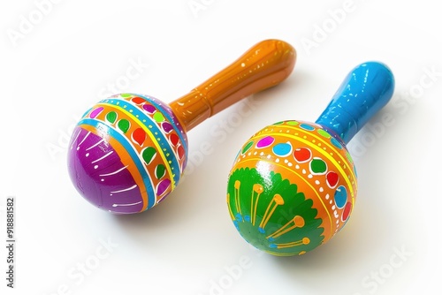 Colorful maracas on white background
