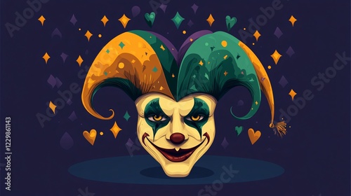 Colorful Mardi Gras Joker Hat Flat Vector Illustration for Festive Celebration Events