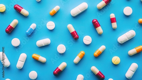 Colorful Medication Variety on Blue Background